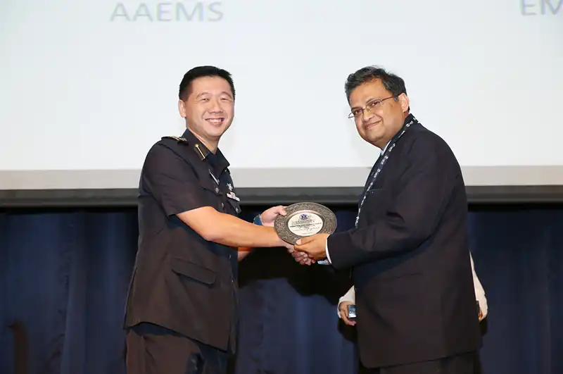 Col (Dr) Ng Yih Yng receiving Institutional Awards on behalf of Singapore Civil Defence Force
